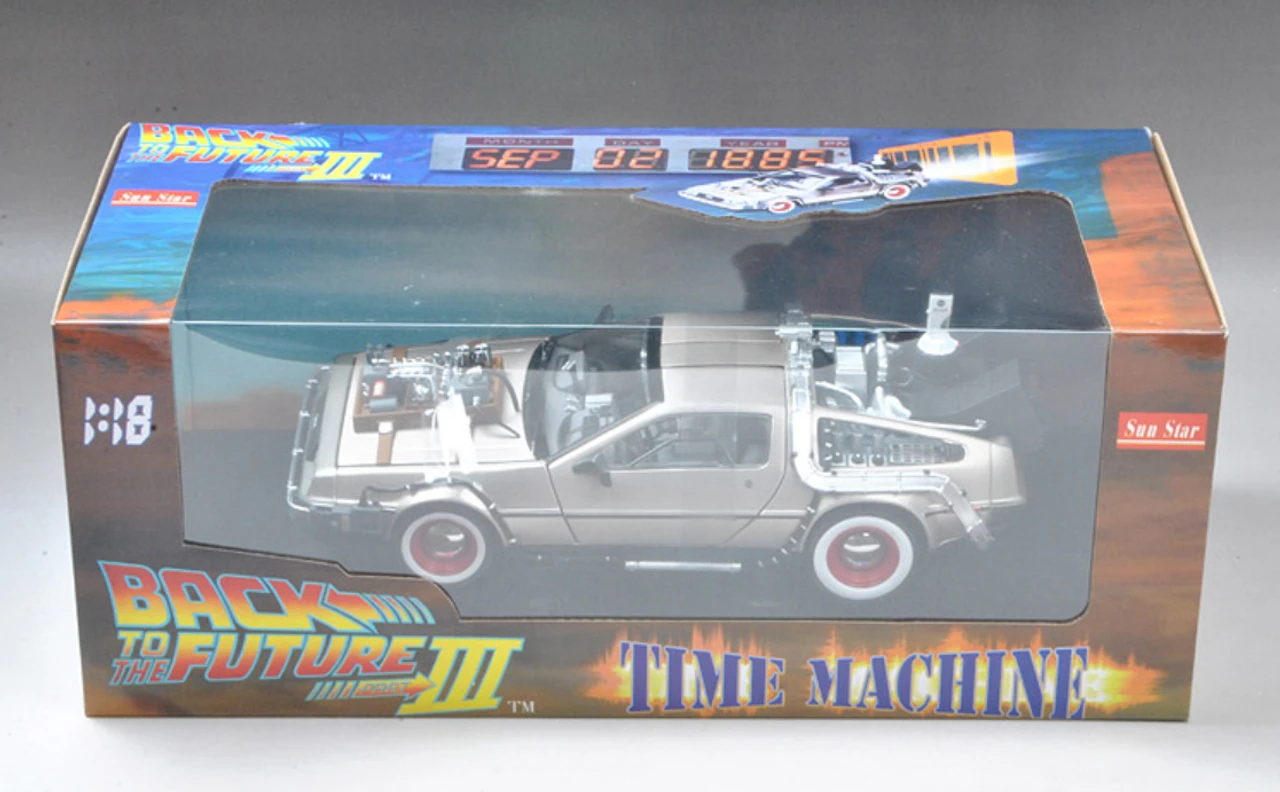 Brand New In Box 1/18 Sunstar DeLorean DMC-12 DMC12 Back to the future III with Red Wheels Diecast Car Model