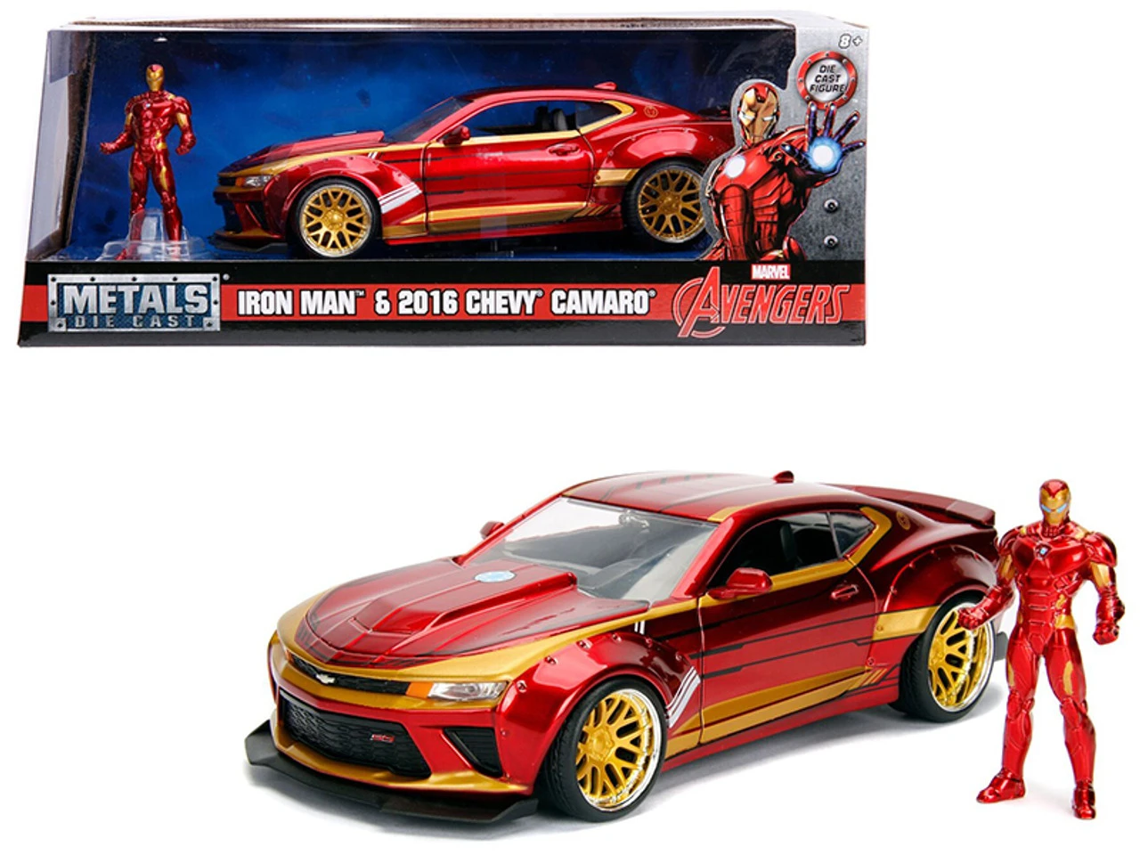 - Brand new 1:24 scale diecast model car of Iron Man 2016 Chevy Camaro with Iron Man Diecast Figure from the “Marvel” Series by Jada.