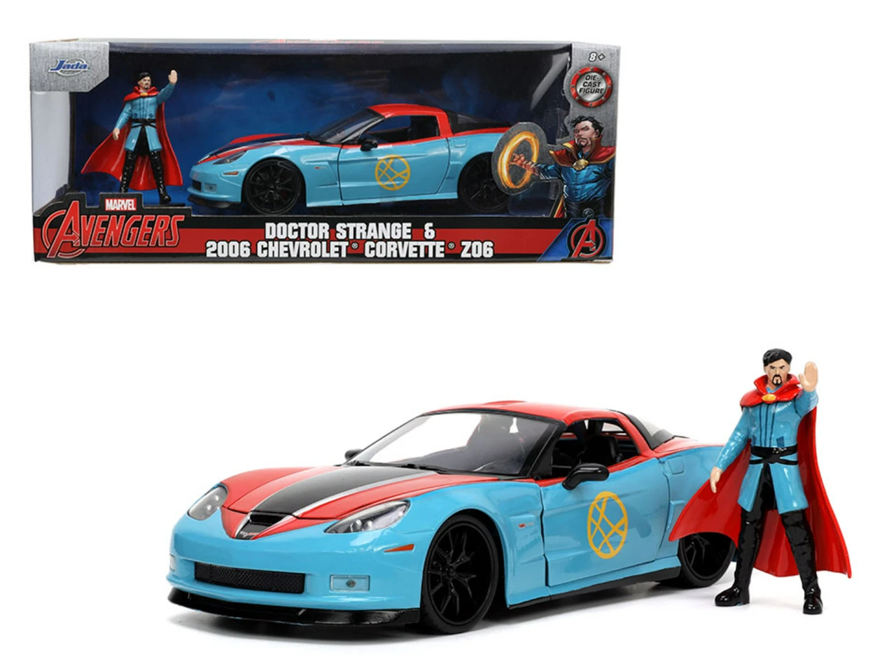 1/24 Jada Doctor Strange Figure & 2006 Chevrolet Corvette Z06 (Blue/Red) Diecast Car Model Marvel Avengers