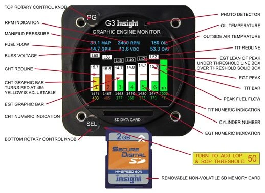 The original GEM was a solitary player. The new G3-G4 will operate standalone too but will also interface with other data sources and report information to other instruments like MFD’s. All of the devices the G3-G4 connects to today didn’t exist in ’79. The G3-G4 is also designed to expand and grow with the times. Less than half of its true potential has been released at this time. The instrument can be updated to acquire new features by loading the SD card via the internet. The G3-G4 update takes only a second while the instrument remains mounted in the airplane.