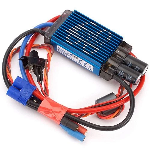 The E-flite® 60-Amp Pro Switch-Mode BEC Brushless ESC (V2). This is a high-quality sensorless brushless electronic speed control with an integrated switch-mode BEC that is very lightweight and efficient. It can operate without the need for a separate receiver battery to power your servos and receivers, saving you weight and complication.