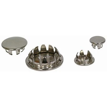 Nickel plated steel snap button hole plug with spring-tension retaining prongs