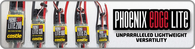Put your power system on a diet with the Phoenix Edge Lite series of ESCs. With the same amazing features and functionality of the Edge series, the Edge Lite offers a slight weight reduction for applications that are tight for space or weight. Simply put, the same brawn with less body – Phoenix Edge Lite.