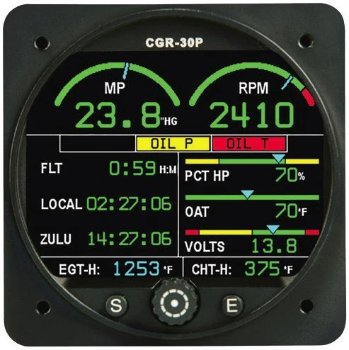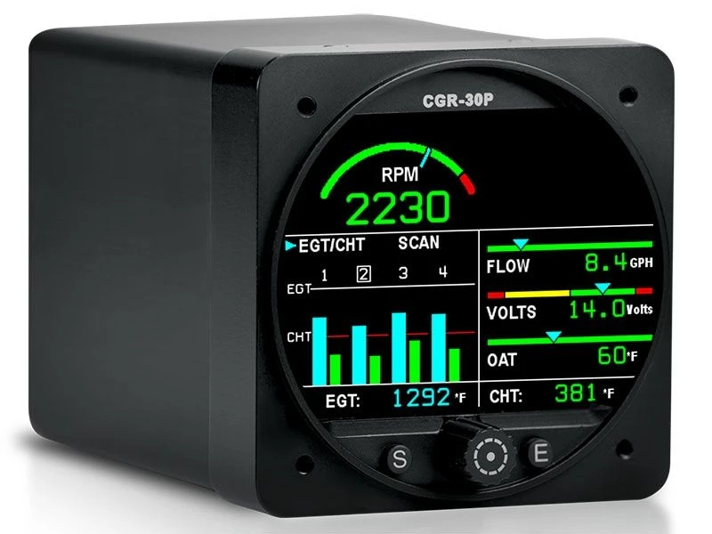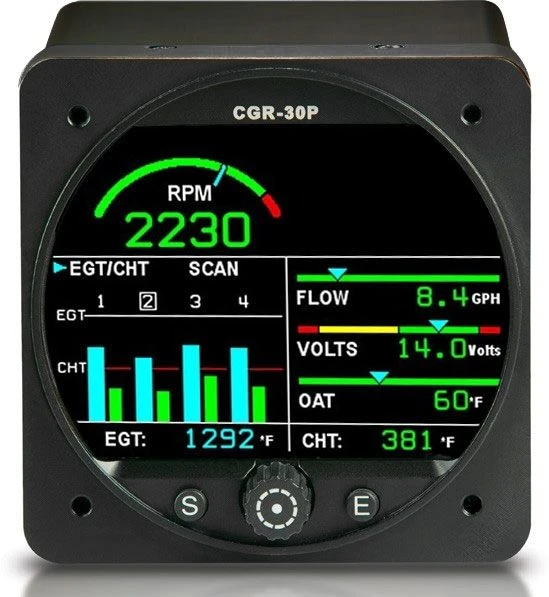 EI is proud to introduce its CGR-30P, the best engine monitor available in the industry. The CGR-30P was designed to replace your aircraft’s tachometer. In addition to replacing your tachometer, EI’s STC’d CGR-30P will replace MANY of your existing primary instruments. Because the CGR-30P is installed in a standard 3-1/8” hole, it doesn’t protrude from your panel or cover adjacent instruments. This gives the CGR-30P a distinct advantage over the competition because it seamlessly integrates into your panel, is easy to install and is the perfect size to fit into any aircraft panel.