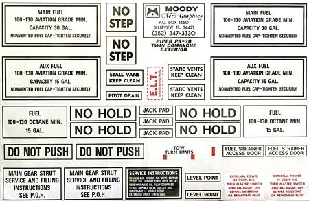 Exterior Placard Kit Piper, PA30 Twin Comanche
