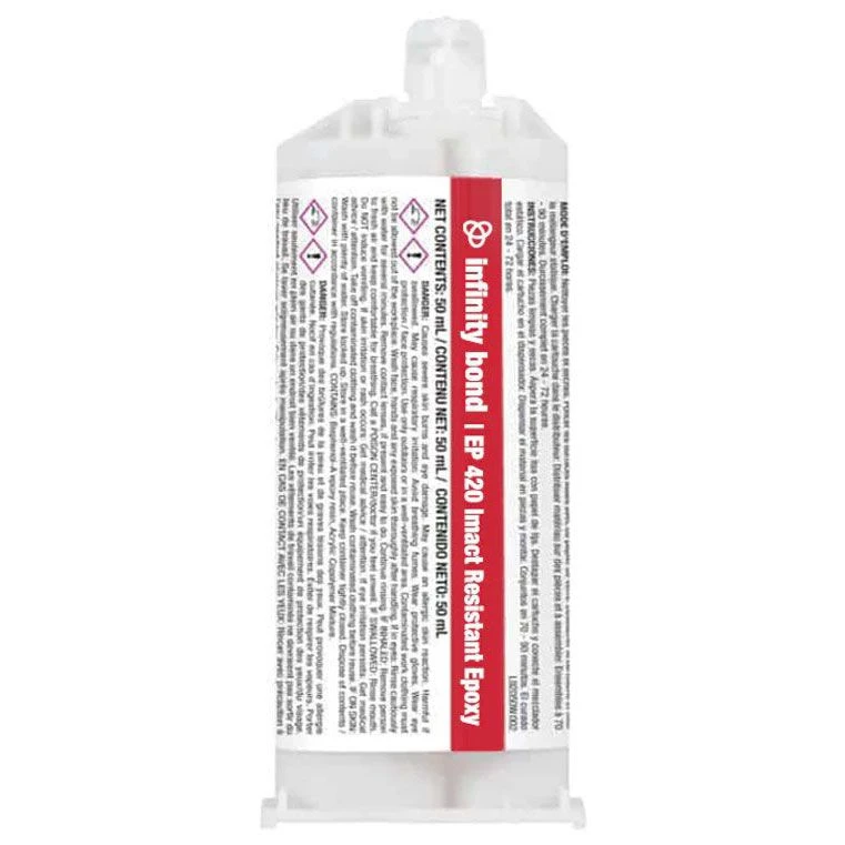 The Infinity Bond EP420 is a toughened epoxy adhesive giving it maximum impact, shock and vibration resistance. This 2:1 ratio epoxy has a slow set time giving users plenty of time to adjust and set parts and cures creating a super high strength bond. The high strength bond created when using the Infinity Bond EP420 also offers great flexibility and temperature resistance on both the high and low ends.