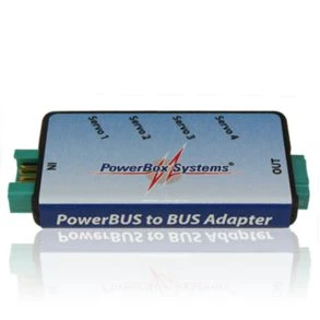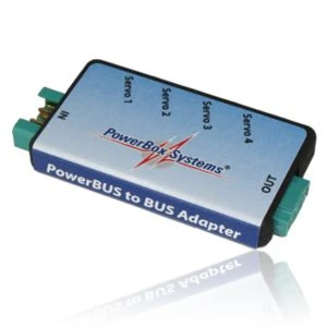 The PowerBus™ to PWM Adapter is used for servos which are not fitted with a bus decoder. In this case the channel assignment is defined at the PowerBus™ to Bus Adapter. The bus signal is decoded in the adapter, which then generates conventional PWM signals for the servos. This unit allows all known makes of servo to be operated with the PowerBus™ system. As with the other adapters, all the outputs are protected against short-circuits both in the signal wire and the power supply wires. The adapter includes integral signal amplifiers for all servo outputs as well as the adapter’s PowerBus™ output. This means that as many bus adapters as required can be connected in series, i.e. cascaded.