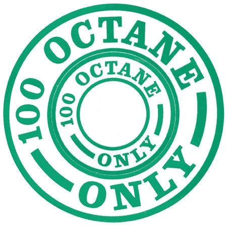 Round Fuel Placard Decal, Fuel 100 Octane Green
