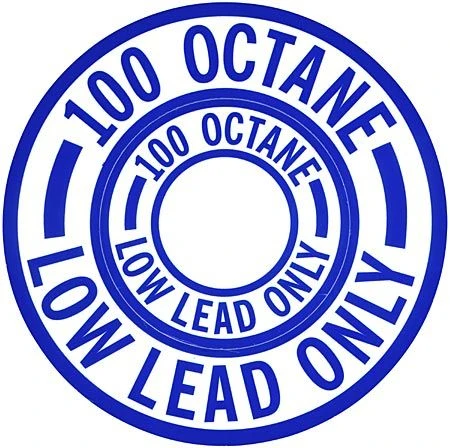 Round Fuel Placard Decal, Fuel 100 Octane Low Lead Blue