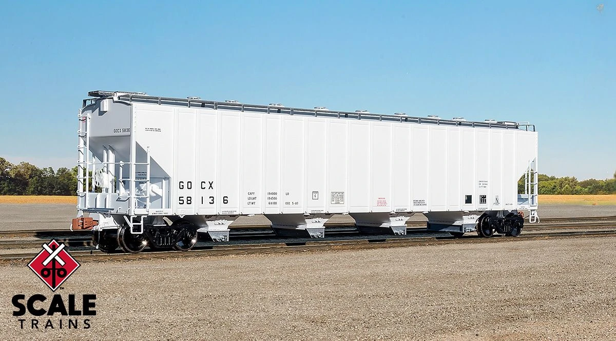 The new ScaleTrains HO Scale Rivet Counter™ series model of the Pullman-Standard 5820cf Covered Hopper Car captures the railroad, road number, and era-specific™ features of the prototype, as well as changes made to the cars throughout their 50+ year lifetime.