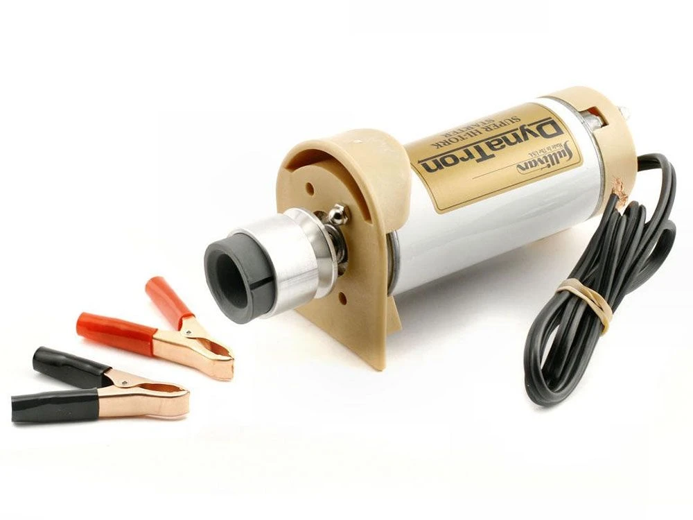 Heavy duty starter for R/C engines up to 2.5 cubic inches. Aluminum pulley grove drive cone. 12 or 24 volts with a maximum of 100 Amps. 340 in-oz (240Ncm) of torque on 12 Volts, 680 in-oz (480 Ncm) of torque on 24 volts. 4800 no load RPM.