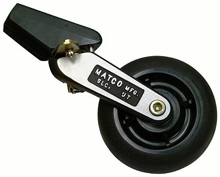 The T6 tailwheel has a 6″ solid rubber tire bonded to a fiberglass reinforced nylon composite wheel with an operating load capacity of 450 lbs. The tailwheel assembly is full swivelling and fits a 1.25″ or 1.50″ spring. The steering arms and wings are heat treated 4130 steel and are irridited to prevent corrosion. Fork and tailwheel base are fabricated from black anodized cast aluminum. All assembly bushings are made of nylatron or oil impregnated brass, the wheel rides on sealed ball bearings. No lubrication is needed for the life of this tailwheel.