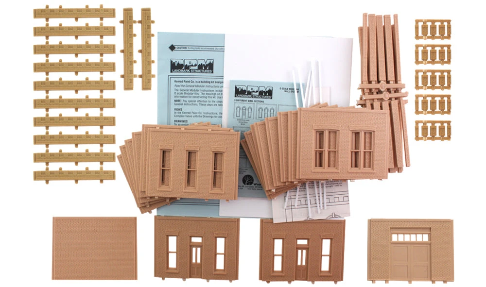 Add authenticity and realism to your O Scale or O Gauge layout with these highly detailed, easy to assemble DPM building kits from Woodland Scenics. Modular parts are made of injection molded styrene plastic and the kits include roof, clear window material and complete instructions. Packages include pilasters, door, windows and clear window material where needed. All sections are the same color. Photo shows a completed and painted kit.